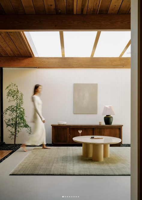 Our Eichler was built in the 1960s by famed builder Joseph Eichler and architect Claude Oakland and is set on the outskirts of North Los Angeles, CA. Architectural details include floor to ceiling windows, board and beam exposed wood ceilings and concrete floors. The design of the space is organic minimal with odes to its mid century soul. The natural light coming through the atrium skylights are perfect during the day for photo + video shoots.